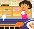 Dora exploratoarea este foarte bucuroasa sa gateasca pentru ea si prietenii sai, ea invatand foarte multe retete din mai multe tari, iar astazi prietenii ei vor sa manance mancare japoneza si anume sushi. Daca vrei sa inveti sa gatesti sushi sau vrei sa te joci acest joc de gatit cu Dora atunci poti sa apesi pe butonul start pentru a incepe. O sa gateste o multitudine de preparate din bucataria japoneza. Trebuie sa fii rapida pentru ca prietenii Dorei sunt deja foarte infometati, insa ai noroc pentru ca toate retetele se prepara foarte usor. Trebuie sa iti folosesti mouse-ul pentru a ghida manutele lui Dora in prepararea retetelor, asa ca mai intai vei folosi cutitul sa tai bucati de ton si unagi, apoi asterni o foita verde pe un instrument special japonez de rulat, dupa care adaugi tonul si orez pe care il intinzi, ceva avocado pentru a varia aromele din sushi si bineinteles creveti, dupa care folosesti instrumentul japonez sa invarti toata compozitia intr-un rulou lung de sushi pe care il vei taia in mai multe bucati. Celalte mici retete se prepara intr-un fel asemanator, tu trebuie doar sa urmezi pasii lui Dora exploratoare si vei putea ajunge un adevarat bucatar japonez. Distreaza-te in acest joc de gatit online mancare impreuna cu Dora!